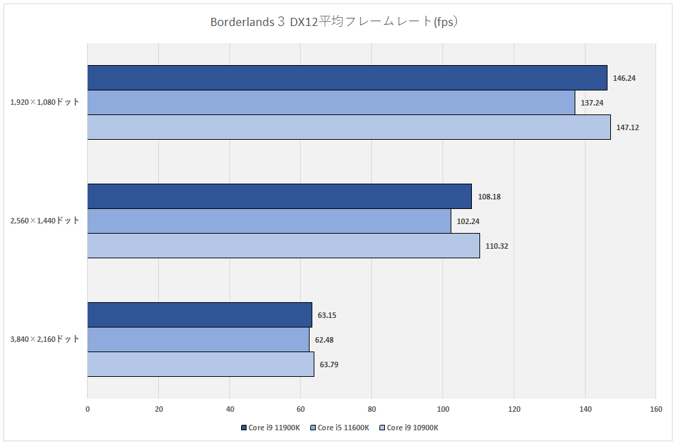 グラフ23:Borderlands3 DX12 平均フレームレート