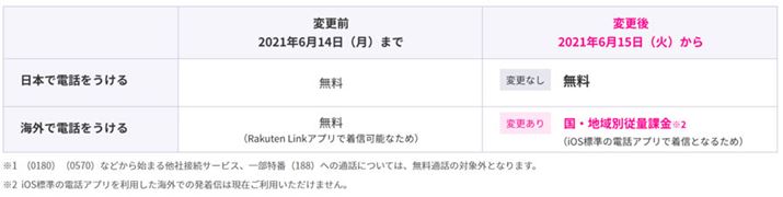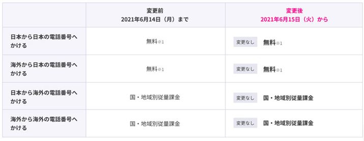 国内と同様海外でも、音声通話の着信には標準アプリを使うため、海外で電話を受ける場合、従来は無料だったところが、国や地域別の従量制料金に変更される。