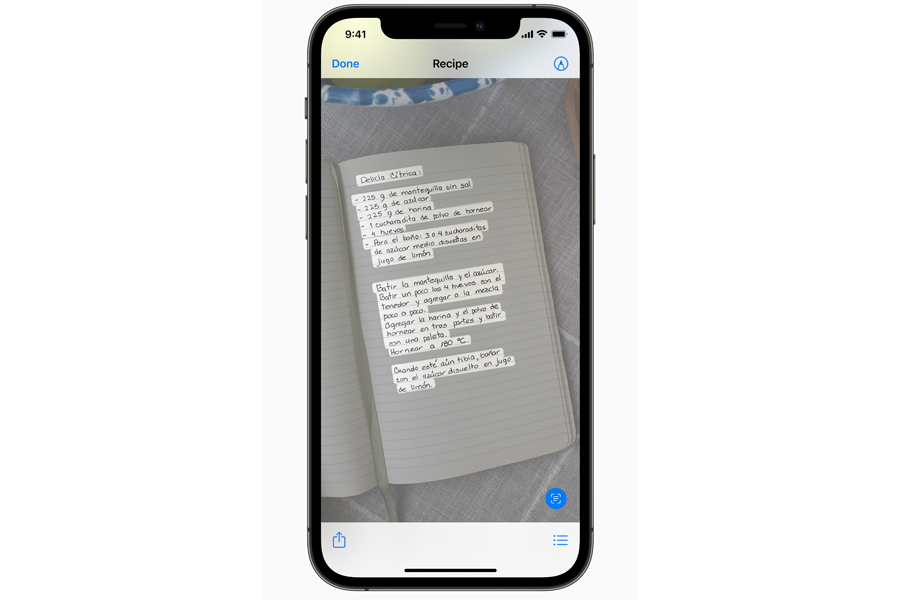 カメラには「Googleレンズ」のように、かざすと画像内の文字をテキストとして取り込める「Live Text」が追加される。画像内のテキスト情報はSpotlight検索にも利用される。写真アプリのメモリーでは、自動生成されるスライドショーの音源としてApple Musicの音楽が利用できるようになる。