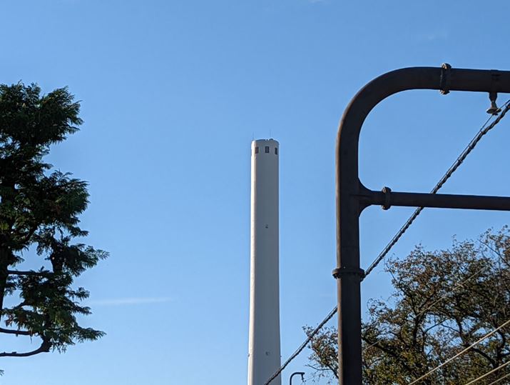上が「Pixel 6」、下が「Pixel 6 Pro」で撮影した4倍ズームの写真。「Pixel 6 Pro」のほうが煙突のディテールがシャープです