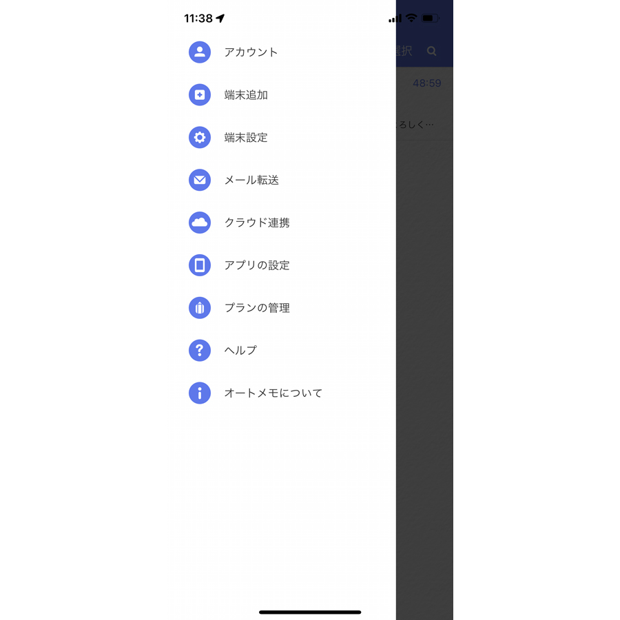 画面左上にある横三本線ボタンをタップするとテキストデータを「メール転送」したり、テキストと音声データをクラウドに保存する「クラウド連携」が利用できます。