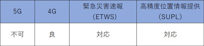本記事では、5Gと4Gの対応レベルを、独自の基準により4段階で判定している。基準は以下となる。また、緊急速報および高精度位置情報提供についても解説しよう。