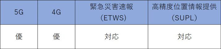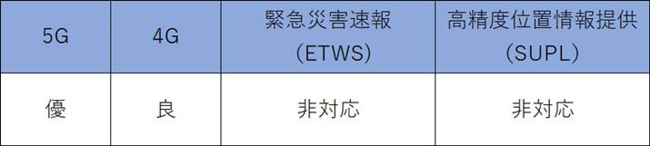 なお、緊急災害速報や、高精度位置情報提供には対応していない。