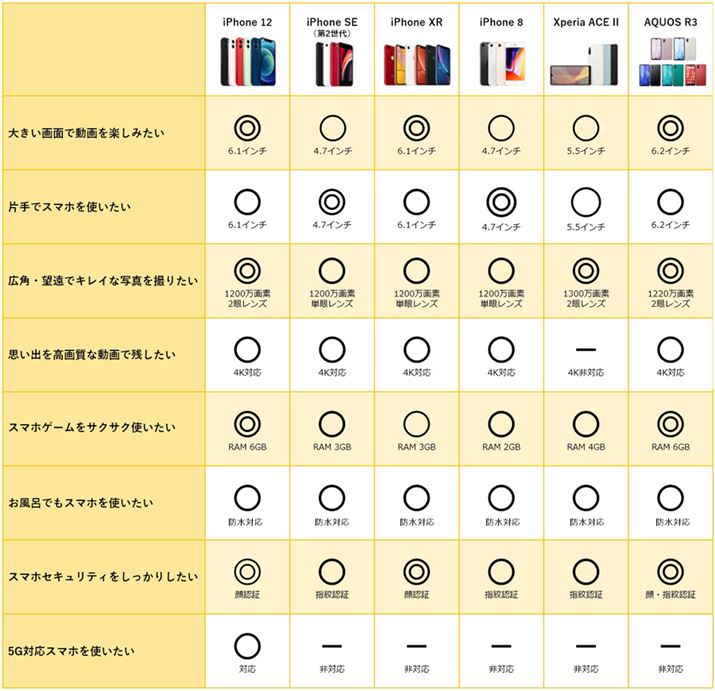 このほか、ゲオで人気の中古スマホがどんなニーズに適しているのかを下表にまとめたので、ぜひ中古スマホ選びの参考にしてもらいたい。