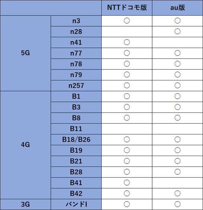 両機種ともに、いずれの販路のモデルであっても、対応周波数帯は大筋で共通しているのがポイントだ。また、NTTドコモにおけるB19、KDDIのB18/B26、ソフトバンクにおけるB8のように、他社のプラチナバンドにもれなく対応している。これなら、他社回線のネットワークでも問題なく使えるだろう。
