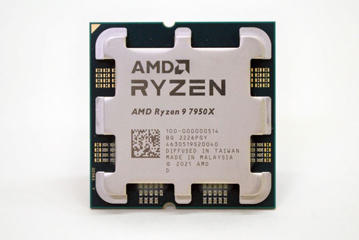 フラッグシップモデルとなる「Ryzen 9 7950X」。放熱の表面積を増やすためか、ヒートスプレッダが独特の入り組んだ形状をしている