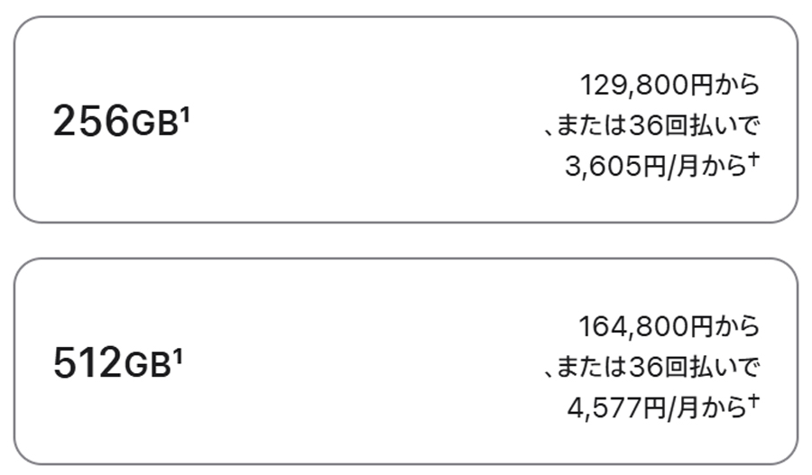 「iPhone 17」シリーズと「Air」の最小構成は256GBからで統一されています。
