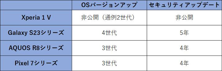 近ごろ注目されているOSバージョンアップの方針は、現時点では明らかにされていないが、過去の製品では2回のバージョンアップが行われている。競合する「AQUOS R8」シリーズや「Pixel 7」シリーズは3回、サムスン「Galaxy S23」シリーズは4回のバージョンアップをそれぞれ予告。本機が従来の2回を超える対応になるのかに注目したい。