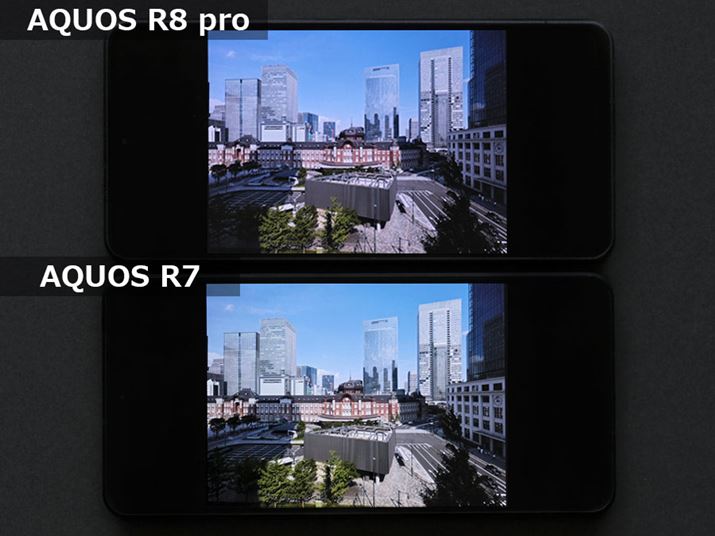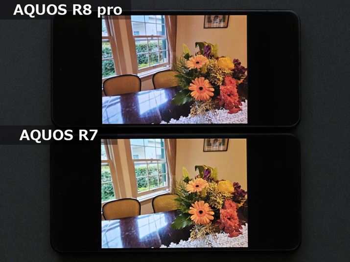 以下に、「AQUOS R8 pro」と「AQUOS R7」のディスプレイの色の違いを示した画像を掲載する。ディスプレイの設定は初期設定のままとし、両モデルで同じ写真データを表示している。