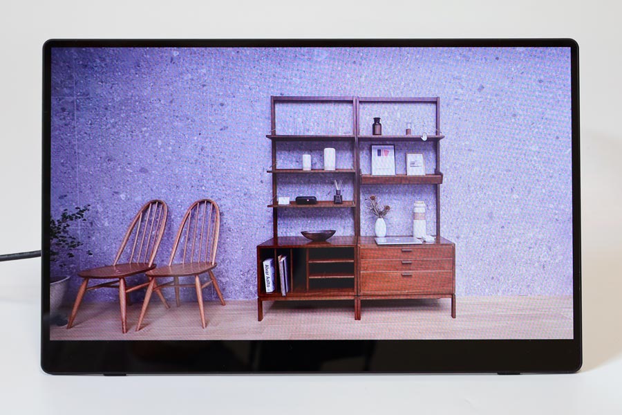 有機ELなので高画質なのもいいところ。液晶と比べると鮮やかで、メインで利用しているノートパソコンの画質の悪さを際立たせてくれます(涙)。解像度は1920×1080のフルHDで、バランスのいい解像感です。コントラスト比は10万:1と有機ELらしい高コントラストを実現。モバイルディスプレイはさまざまな角度で使われるため、視野角が左右170度/上下170度と広いのもいいところです。日常的な業務だけでなく、クリエイティブな作業や動画やゲームなどエンタメ用にも十分使える表示クオリティです。