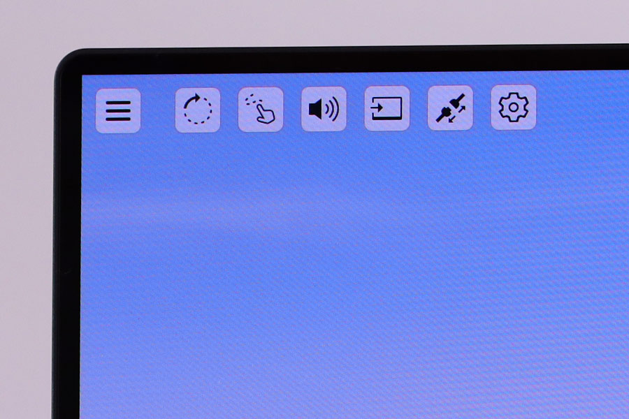 無線接続時には画面の上に各種メニューが表示されます。画面の回転もここから行えます。