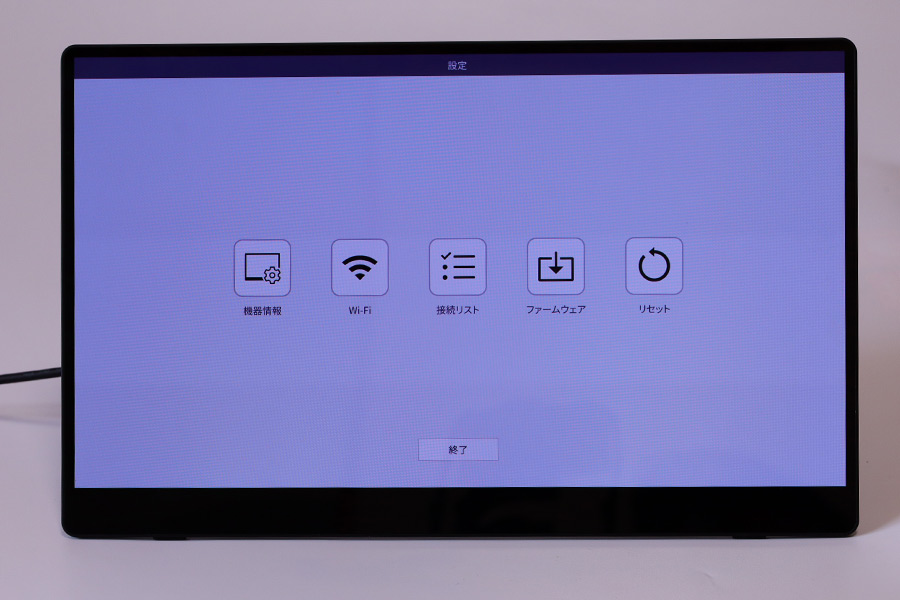 無線接続時にアクセスできる設定画面。Wi-Fi設定もここから行います