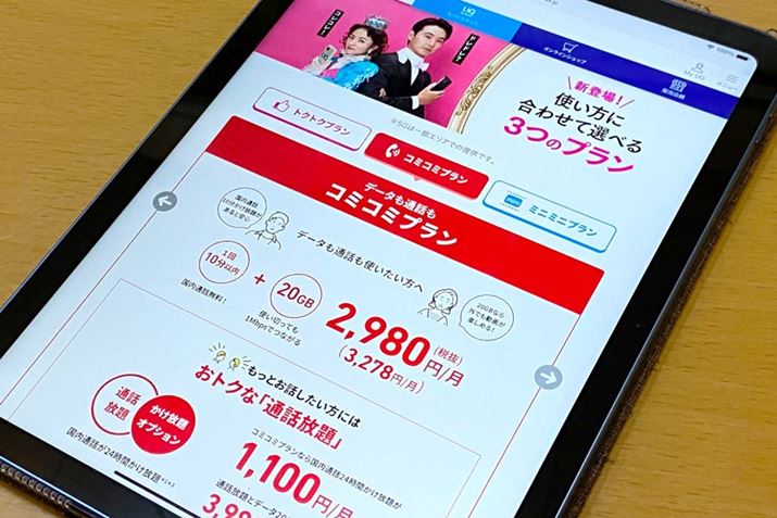 「コミコミプラン」はデータ利用量が毎月20GBで月額料金は3,278円、各通話最初の10分間が無料になる準通話定額オプションが含まれています(10分を超えると30秒あたり22円)。データ利用量と月額料金に関しては、従来の「くりこしプランM+5G」(データ利用量毎月15GB、月額料金2,728円)と「くりこしプランL+5G」(同25GB、3,828円)のちょうど中間に位置する料金プランです。