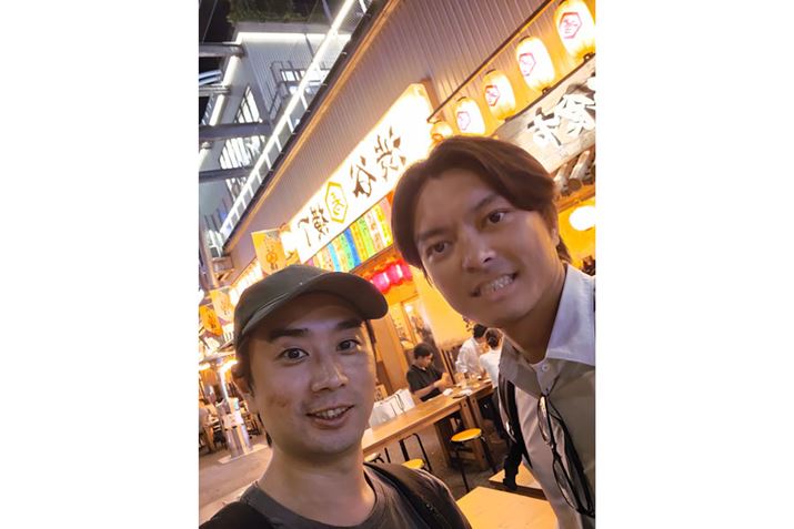 夜の繁華街をバックに撮影(下記写真)したところ、背景の夜景は明るく、かつ、逆光で暗くなりがりな顔も表情が見えるくらい明るいです。ただし、ちょっとブレていたり、画質が粗かったり、白飛びする部分が見えるなど、気になる点があったのも事実。ただし、構造的に小さなイメージセンサーしか設置できないフロントカメラとしては明るく撮れているほうだと思います。