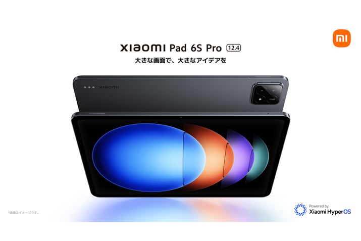 「Xiaomi Pad 6S Pro 12.4」のメインビジュアルは、ボディの大きさに加えて、薄さも強調したグラフィック。OSは、Android 14(Xiaomi HyperOS)を搭載している
