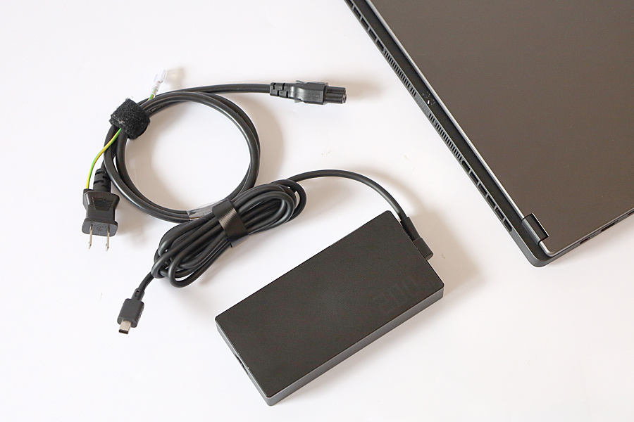 ゲーミングノートPCはACアダプターが巨大で重いです。本モデルのACアダプターも巨大ではありませんが、大きくて重い部類に入ります。充電自体はUSB PD経由でもできるので、外出先でゲームをしないなら、小型軽量のUSB PD充電器を別途購入するのもありでしょう。