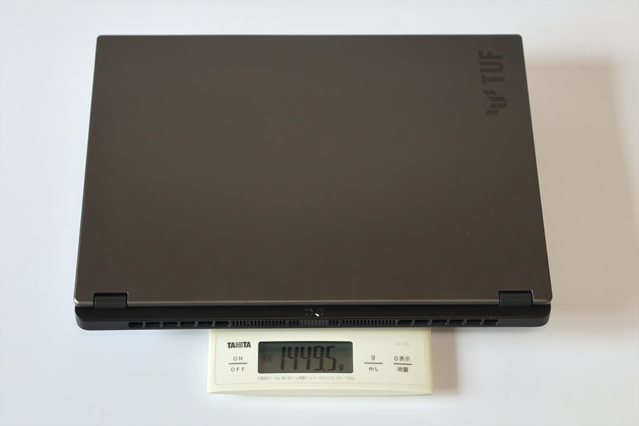 キッチンスケールでの実測は1449.5g。カタログスペックよりも軽量でした