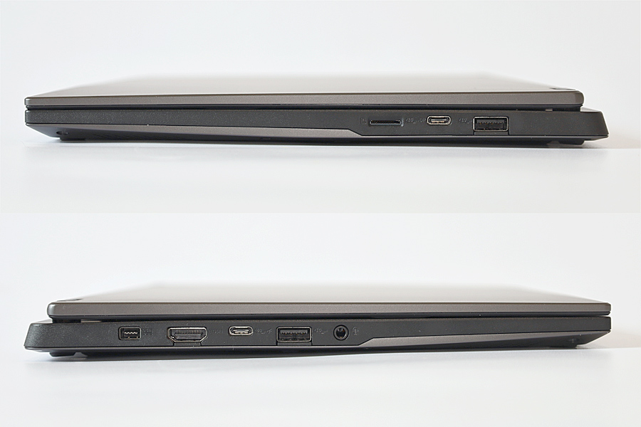 外部インターフェイスはHDMI出力、USB 4(Type-C/Power Delivery対応)、USB 3.2(Type-C/Power Delivery対応)、USB 3.2(Type-A/Gen2)×2。microSDメモリーカードスロット、マイク入力/ヘッドホン出力を搭載。14型ノートパソコンとしては充実しています。