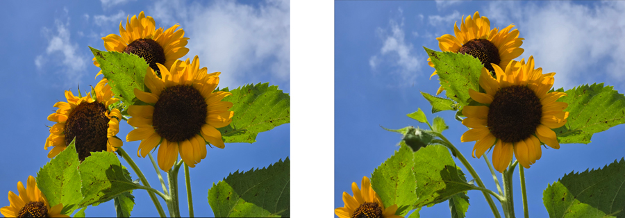 映像の編集は、物体の削除や移動などが生成AIで行える。左の写真のひまわりの一輪を除去してみた