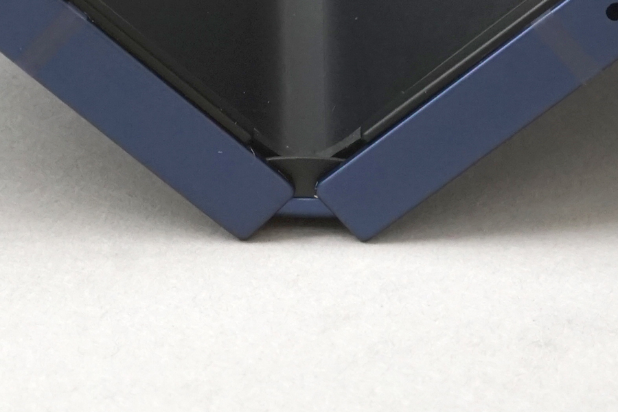 ディスプレイの折り目の端に生じるすき間がほとんどない。異物が入り込みにくくなるので耐久性向上につながる