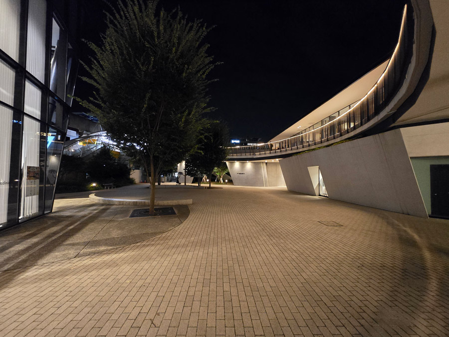 明るめの夜景を超広角カメラで撮影。解像感を維持しつつノイズは抑えており、自然に感じられる画質だ