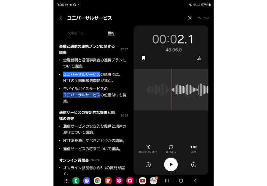 ボイスレコーダーの文字起こし機能は、話者を識別できる。しかも要約を箇条書きでまとめてくれる