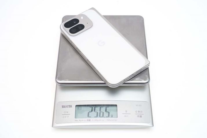 実測重量(nanoSIMカードを含む)は「Pixel 9 Pro Fold」が256.5g(上)、「Pixel Fold」が281g(下)