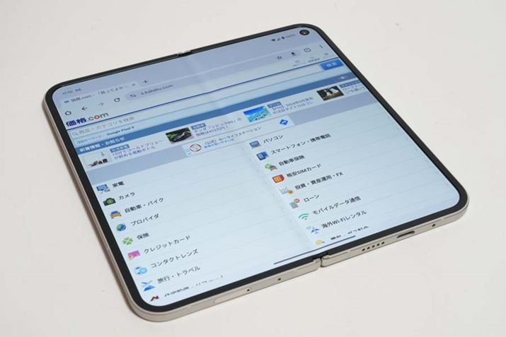 「Pixel 9 Pro Fold」を開いたときの画面は約1:1。縦向き、横向きのどちらでも比率がほとんど変わりません