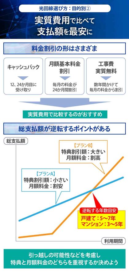 光回線の「料金を安くしたい」なら、実質費用で比べるのがおすすめです。