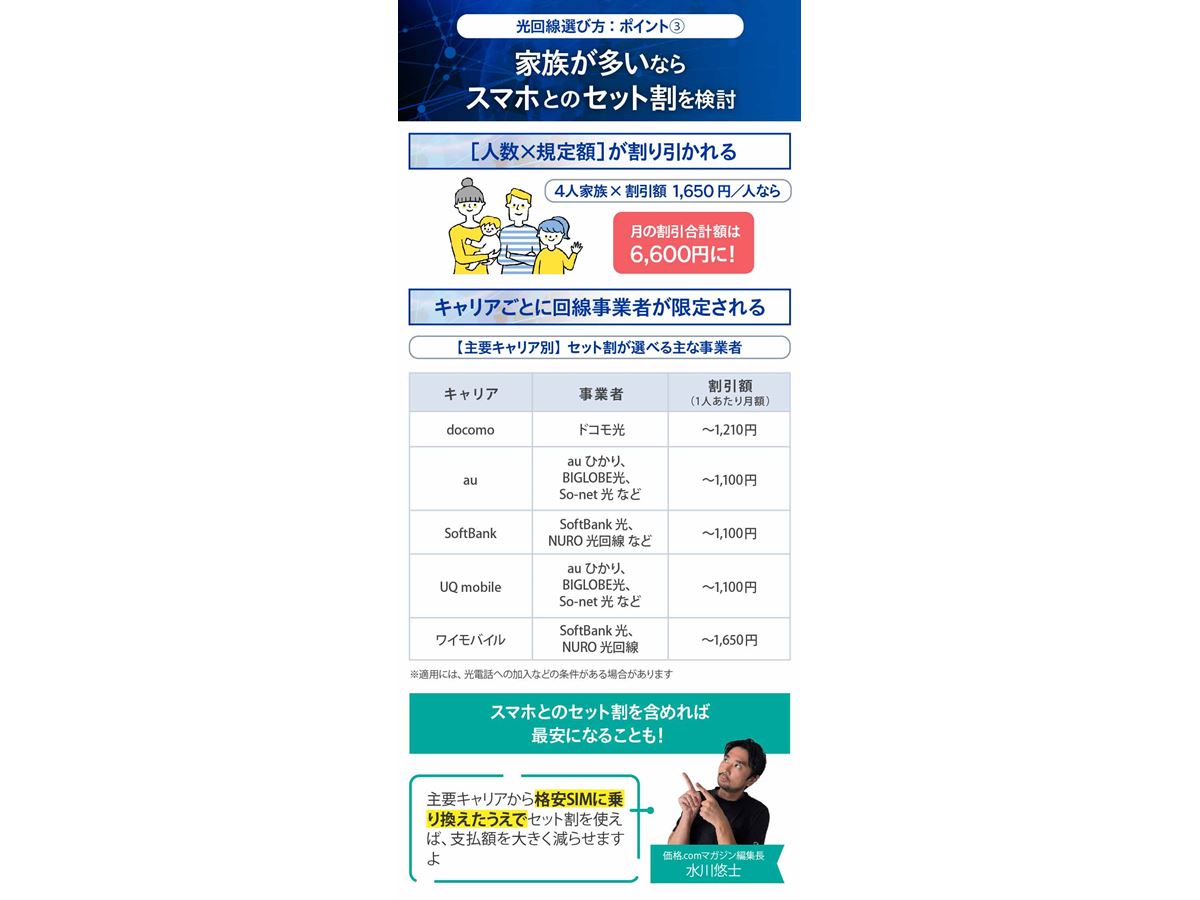 月額料金 | 契約期間 | スマホセット割 | プロバイダ /回線事業者 |