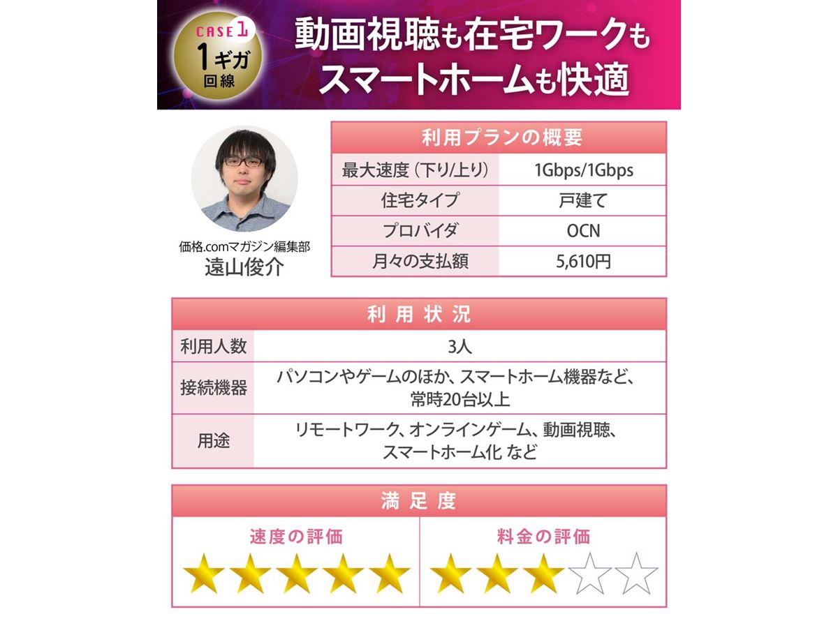 新居への引っ越しを機に「OCN 光」を選んだのは、仕事での利用を考え、プロバイダとしての信頼性と速度の安定性を最優先したかったからです。価格.comのキャンペーンによる還元率が高く、初期費用や月額料金のバランスがよかったことが決め手になりました。