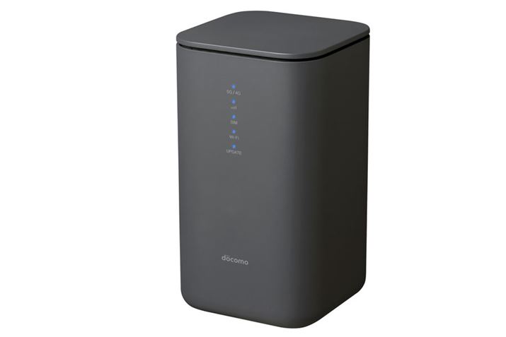 NTTドコモの最も新しいホームルーター製品は、ダークグレーのカラーが特徴的なシャープ製の「HR 02」。モバイル通信の速度は下り4.2Gbps、上り218Mbpsで、プラチナバンドの800MHz帯に接続も可能。Wi-FiもWi-Fi6に対応するなど性能は高く、WPSやQRコードで簡単にWi-Fi接続できる仕組みも整っている。