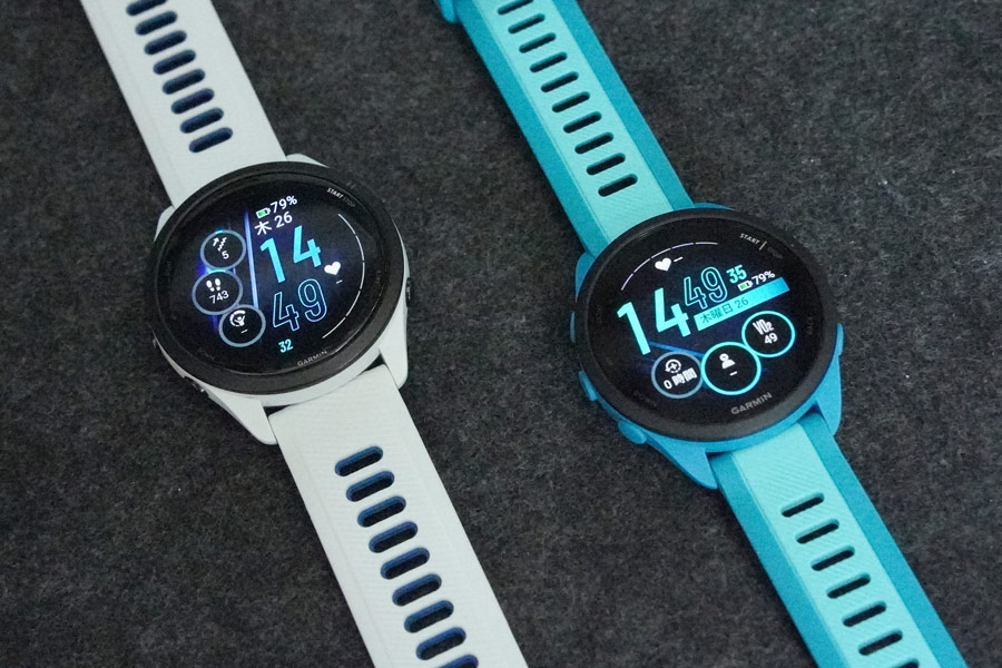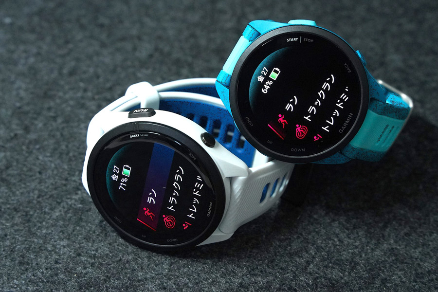 初心者におすすめの2大ランウォッチ。左がエントリー向けの「Forerunner 165」、右が中級者向けの「Forerunner 265」。どちらも2024年2月29日発売