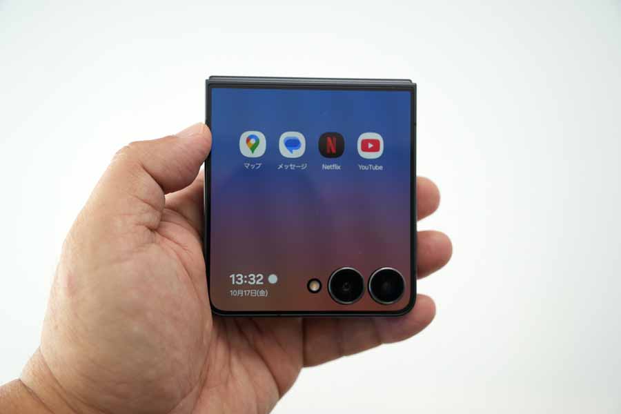 外側ディスプレイのサイズは「Galaxy Z Flip7」が4.1インチで、「motorola razr 60」が約3.6インチ。より多くの情報を表示できるという意味で「Galaxy Z Flip7」に優位性があるが、使用するアプリによって表示領域が異なるので、常に「Galaxy Z Flip7」が有利というわけでもないようだ。