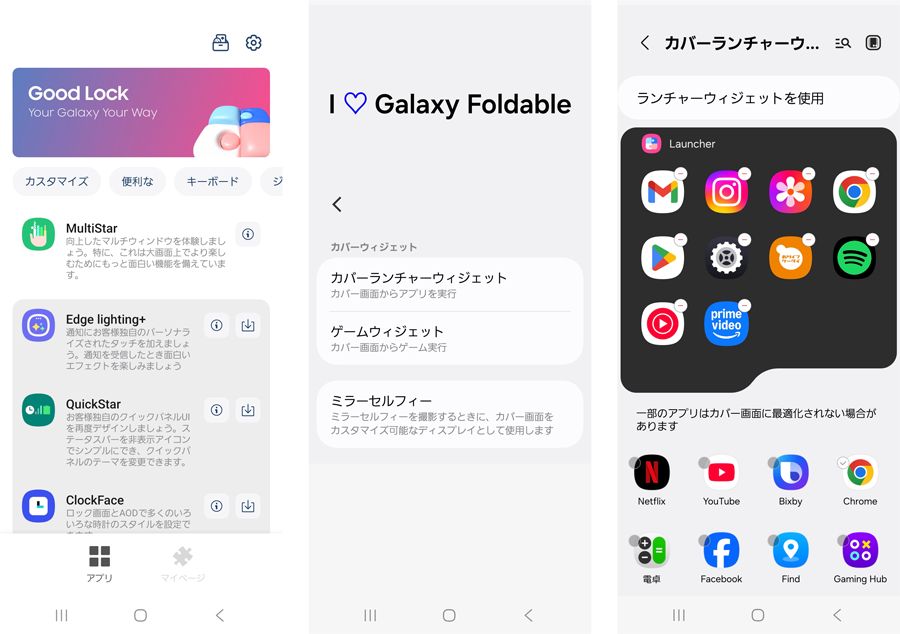 「Galaxy Z Flip7」は「Good Lock」というアプリをインストールすれば、外側ディスプレイで使いたいアプリを設定できる