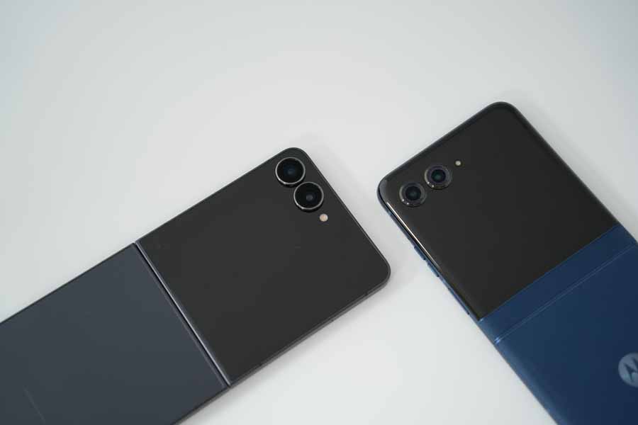 左が「Galaxy Z Flip7」、右が「motorola razr 60」。どちらも広角+超広角の2眼で、スペックも近い