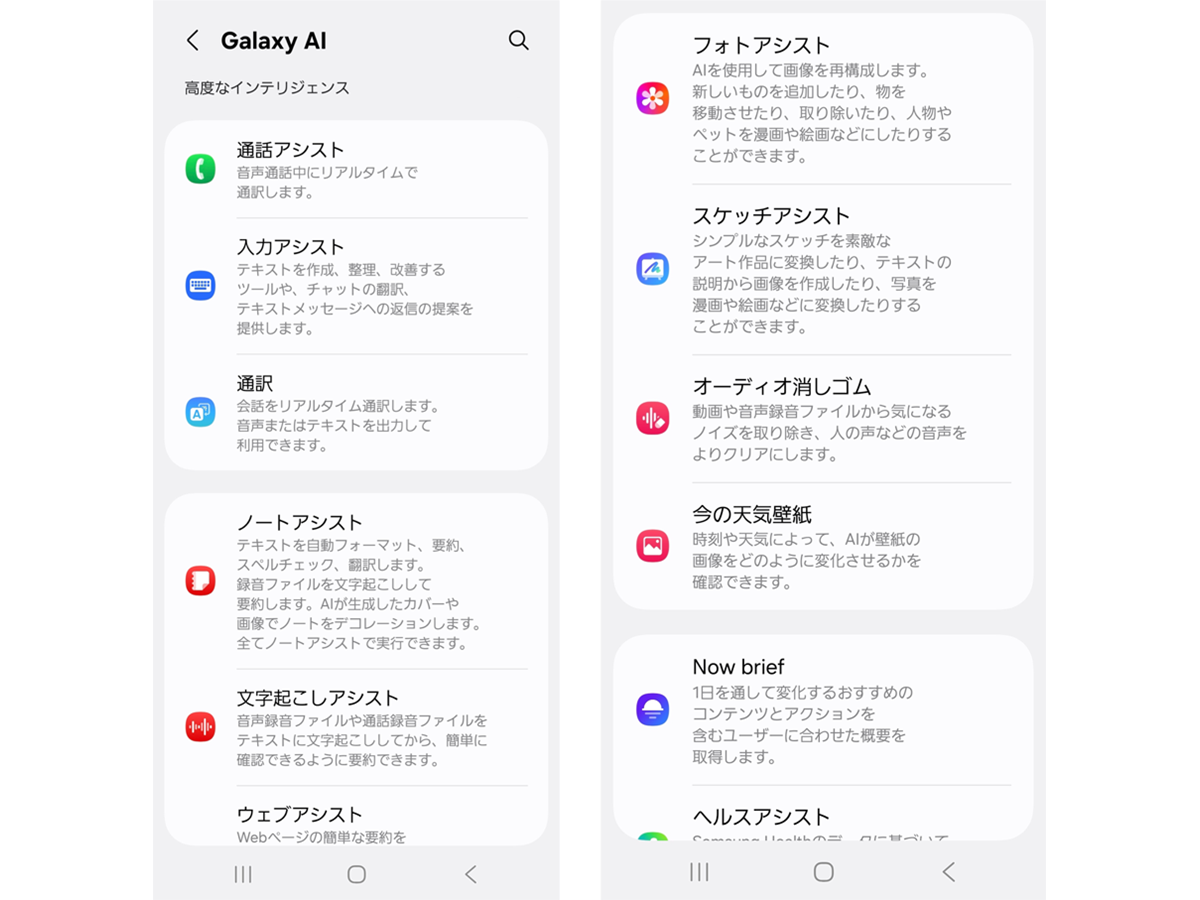 「Galaxy Z Flip7」に搭載される「Galaxy AI」は、文章や画像の生成、通話音声のリアルタイム翻訳、レコーダーで録音した音声の要約や翻訳など、幅広い機能を利用できる。スマホに最初から搭載されるAI機能としてはトップクラスの充実度で、すべて無料で使えるのが魅力だ。