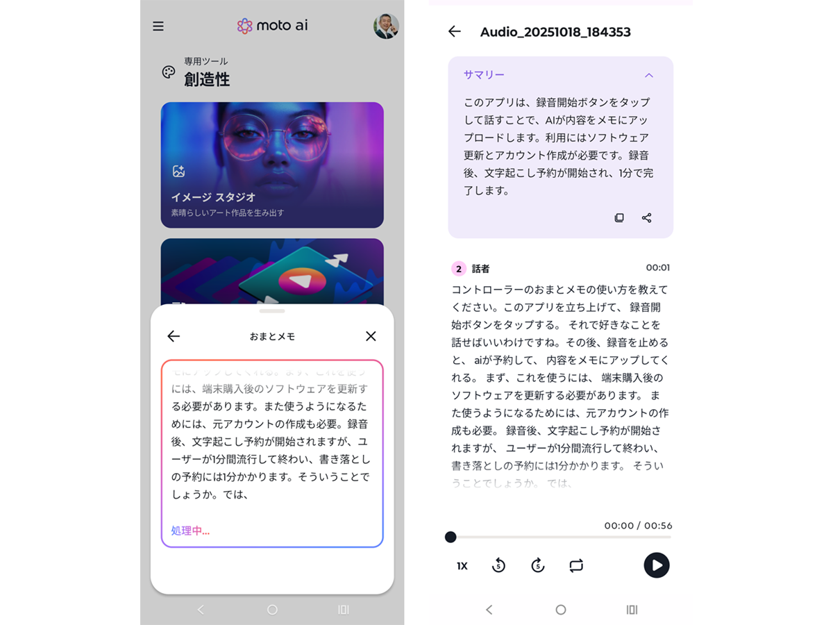音声を録音すると、要約して表示してくれる「おまとメモ」