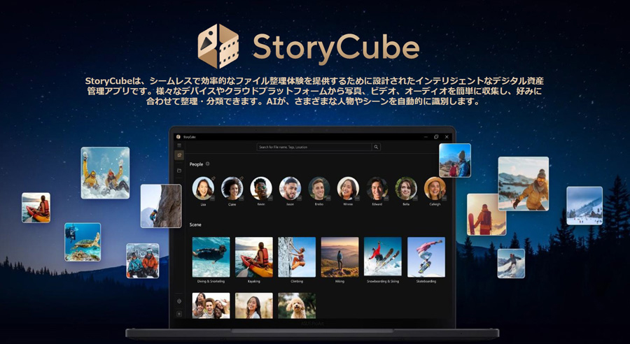 さらに、ASUS独自のデジタルメディア管理アプリ「StoryCube」に対応していることも特筆すべきだろう。写真やビデオ、音楽データをワンストップで管理し、人物やシーンなどをAIが自動識別してまとめてくれる利便性の高いアプリだ。