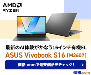 「ASUS Vivobook S16 (M3607)」は、「Copilot+ PC」準拠のAI PCという充実したスペックを備えるモデルながら、価格は抑えられた間違いない高コストパフォーマンスモデルだ。しかも、16インチ有機ELディスプレイとスタイリッシュで頑丈な筐体を備えることで独自の価値も訴求している。