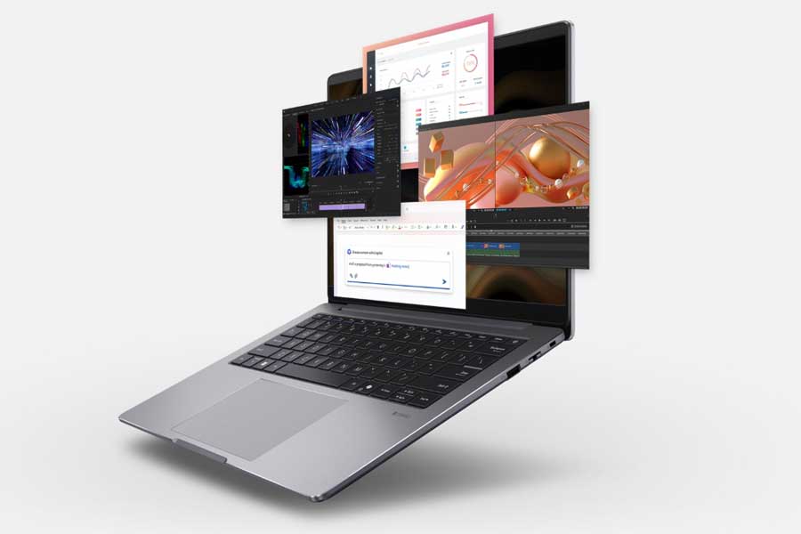 最大64GBメモリーのオプションを選択できる「PM3406(14インチ)」。高負荷なAIタスクや高度なマルチタスク環境の生産性を大きく引き上げる