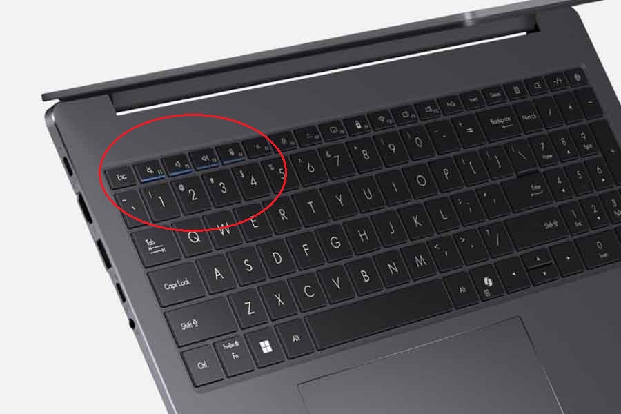 音量コントロールやマイクのオン/オフのショートカットキーを、上部左側にまとめて配置。青色のアンダーラインが付けられ、視認性が高い