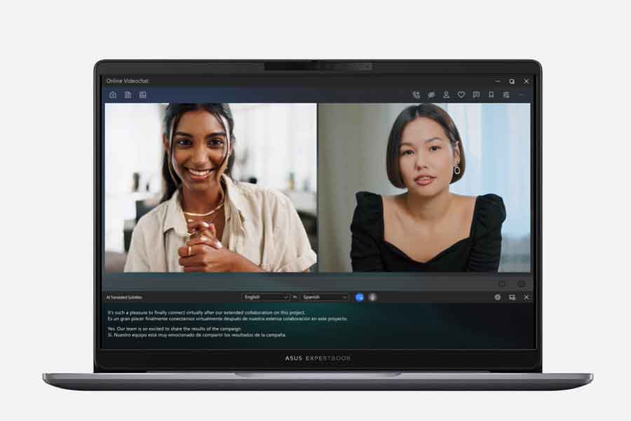 ASUS独自のAIアシスタント「ASUS AI ExpertMeet」を搭載。「AIミーティング議事録」や「AI翻訳字幕」など、多彩なAI機能でWeb会議をサポートする