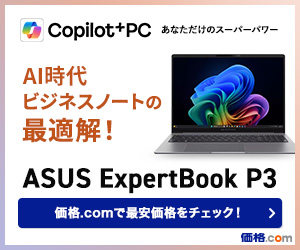圧倒的な性能、場所を選ばないモビリティ、そして揺るぎない信頼性。これらを兼ね備えた「ExpertBook P3」シリーズの新モデルは、AI時代を生き抜くビジネスパーソンにとって、まさに「最強のパートナー」と呼ぶにふさわしい存在といえるだろう。