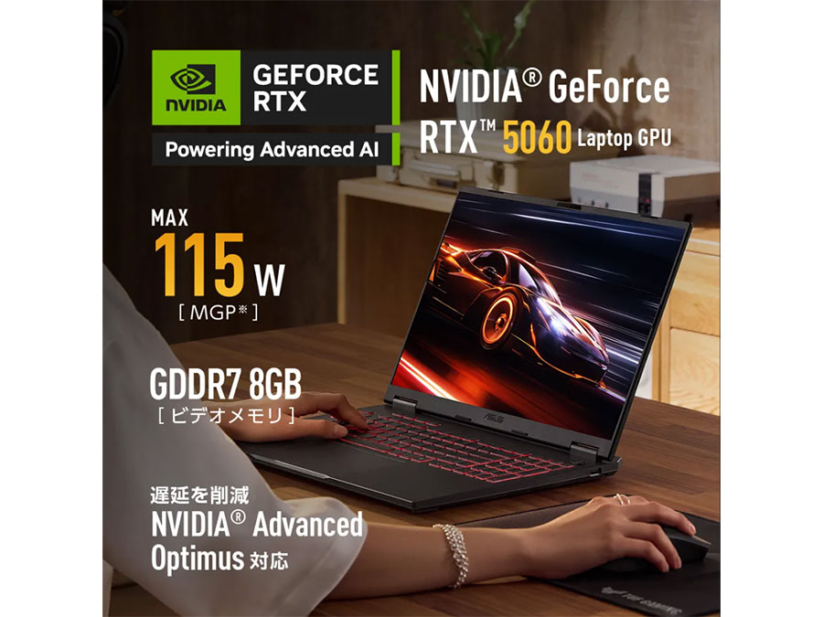 最大115Wのグラフィックスパワー(MGP)を発揮するミドルクラスGPU「GeForce RTX 5060 Laptop GPU」を搭載