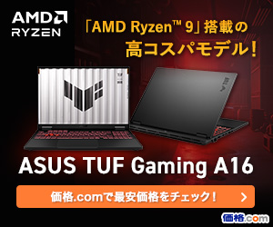 また、ラインアップとして、より高性能なGPU「GeForce RTX 5070 Laptop GPU」を搭載する上位モデル「ASUS TUF Gaming A16 FA608PP(FA608PP-R9R5070S)」が用意されている。さらに高いグラフィック性能を求めるなら、こちらを選ぶとよいだろう。