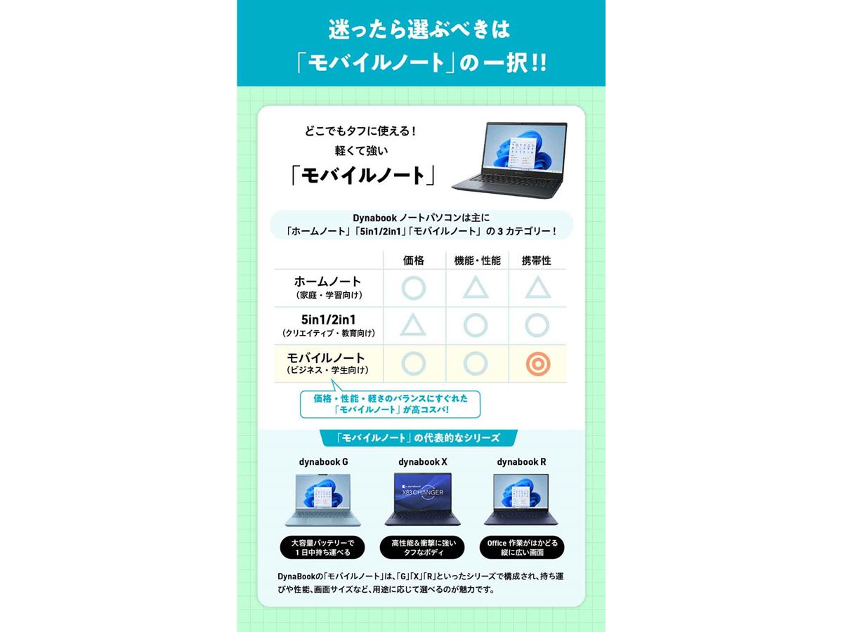 ・ビジネス・学生向けの「モバイルノート」(dynabook X、G、GS、S、XP、R、Mシリーズ)