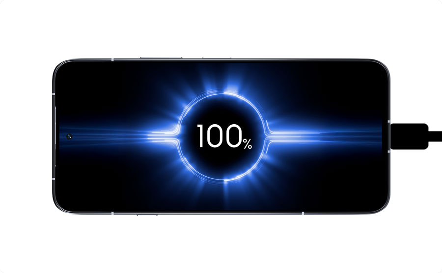「充電ブースト」の利用を事前に設定し、同梱の充電器利用した場合。1〜100%までの最短充電時間。使用環境などにより変動します。画面消灯状態且つ摂氏25°環境下でのテストに基づくものです。