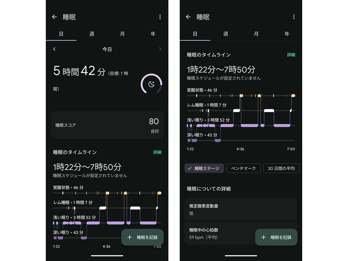 睡眠の結果画面。従来モデルより正確さが向上したという