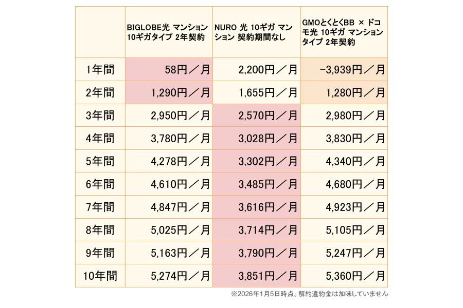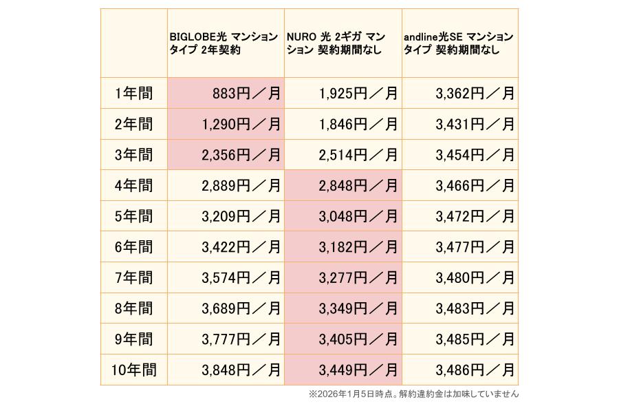 ・短期利用で安い「BIGLOBE光 マンションタイプ 2年契約」